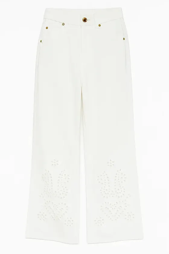 - 5 bolsillos y botón metálico personalizado. Los bolsillos de la espalda con pespunte personalizado por la marca.