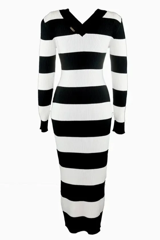 - Vestido de punto a rayas en negro y blanco