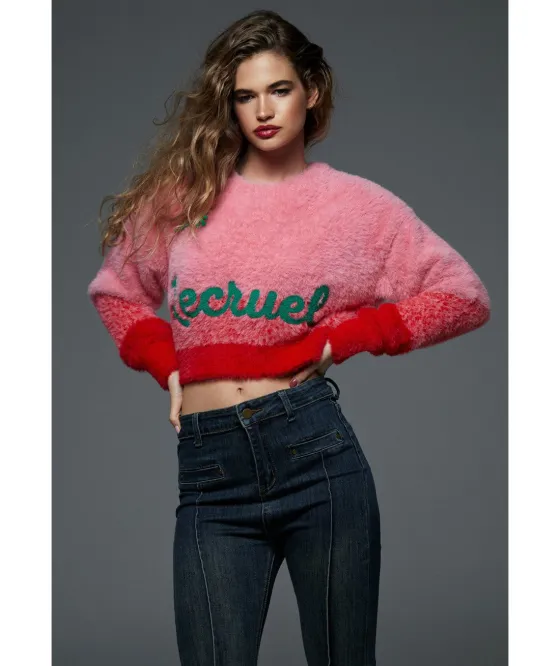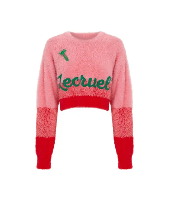 - Jersey de pelo bicolor, en rosa con rojo.