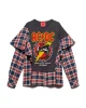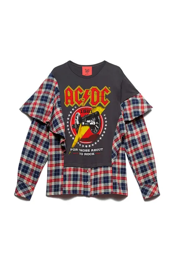Rock y feminidad, todo a la vez. La camiseta de AC/DC transforma el look clásico en capas en una prenda llamativa y poco convencional. La parte delantera presenta un llamativo estampado de bandas con efecto camiseta, cosido sobre una base de camisa con estampado de cuadros, mangas largas y volantes aplicados. Está rematada con el toque característico de las letras Aniye By en la parte trasera.