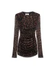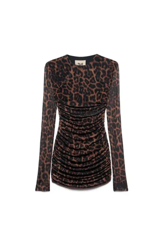 El minivestido Judy fusiona el poder visual del estampado animal con una silueta favorecedora que celebra el cuerpo de forma natural. El drapeado crea movimiento a lo largo del cuerpo, realzando las curvas para añadir dinamismo a la forma. El cuello redondo y las mangas largas realzan el look con una sencillez refinada.