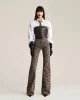 Los vaqueros Lizzy acampanados combinan vibraciones urbanas y un espíritu salvaje, añadiendo un toque atrevido a tus looks de día. Confeccionados en mezclilla de algodón con estampado animal en toda la prenda, presentan una pernera acampanada y un corte ajustado.