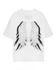 - Detalle de alas en la espalda cosidas en relieve en blanco y negro con bordado en dorado.