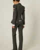 - La cintura del pantalón tiene un detalle distintivo en la parte superior, donde el borde está deshilachado el cual le da un toque moderno, contrastando con la formidad del resto del diseño.