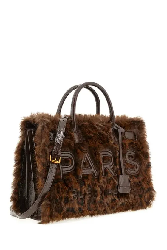 - Bolso Tote en ecopiel estampado en mancha animal print en marrones y negros.