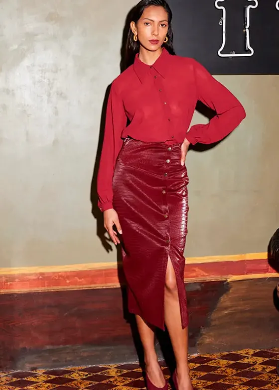- Vestido midi en un color burgundy (color vino) que no puede ser más divino.