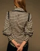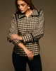 - Con mezcla de tejido, en diferentes tamaños de cuadros. Delantero y espalda más grande. Mangas, costadillos y cuello más pequeño.