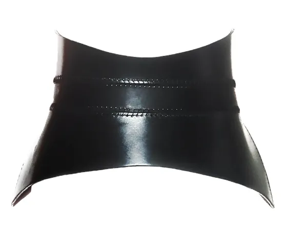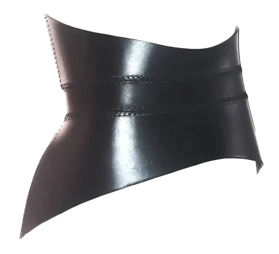 Son piezas hechas a mano, 100% piel de vacuno y teñidas con tintes vegetales. Sistema de cierre con una hebilla en la parte de atrás. Medidas parte más estrecha (central) 15,5cm y parte más ancha (los laterales) 31,5cm