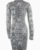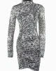 - Vestido estampado con mancha de animal print en tonos negros y grises.