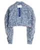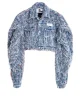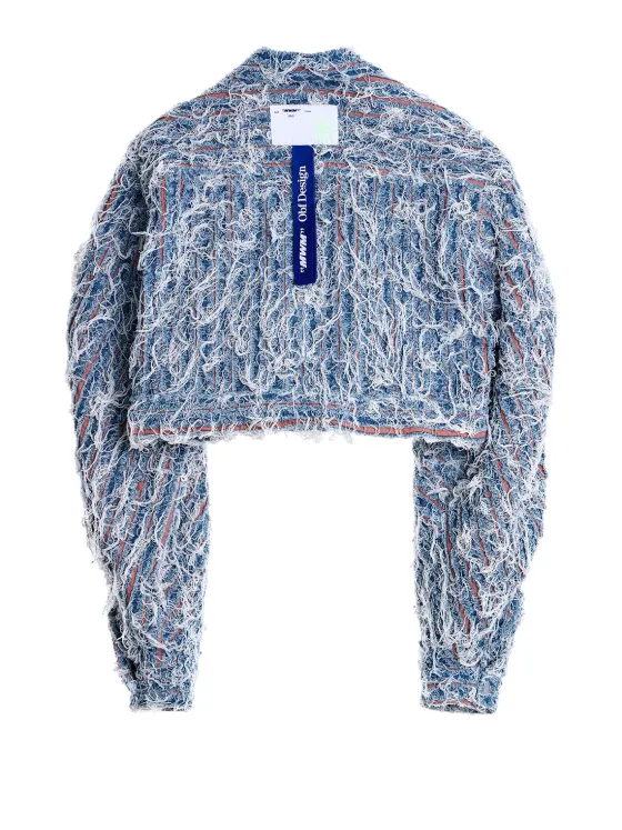 Cazadora vaquera, en un tejido muy original, todo deshilado. Con broches como sistema de cierre. 2 bolsillos con tapeta y broche en el delantero.