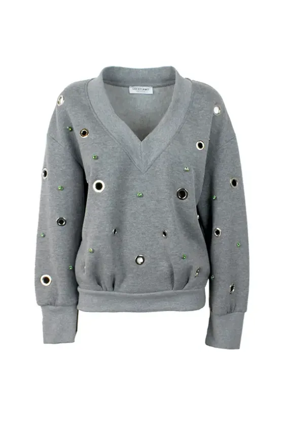 - Sudadera gris en una felpa de algodón maravillosa.