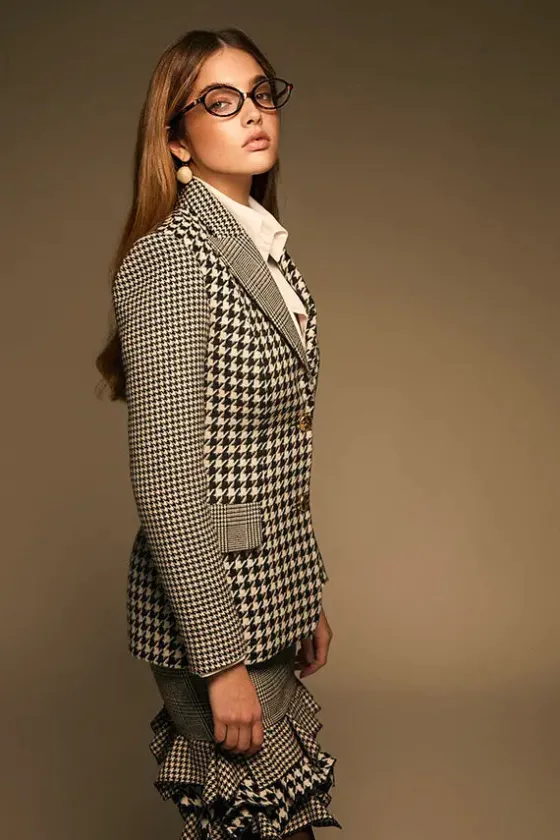 - Blazer en un cuadro de pata de gallo en blanco y negro de la colecci贸n FW 25-26 de u Do It.