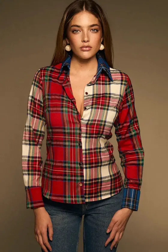 - Mezcla de tejidos en cuadro tartán en gamas de rojos, blanco, verdes, azules, amarillos…