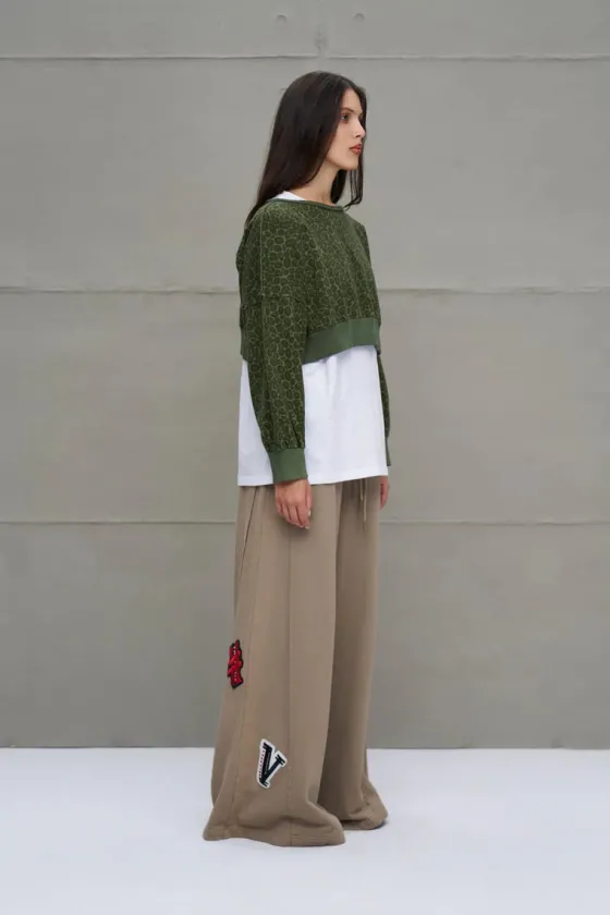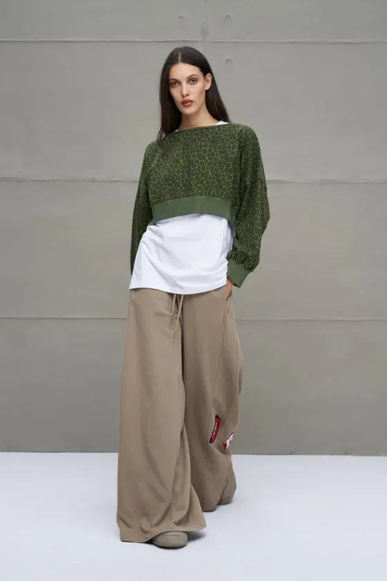 - Sudadera corta con estampado de animal print en verde.