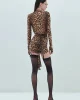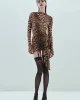 Da rienda suelta a tu lado salvaje con el minivestido con estampado animal Malindi, que luce una silueta ceñida al cuerpo con cuello alto, hombros drapeados y un espectacular detalle de fajín. Su falda voluptuosamente fruncida esculpe la silueta con seguridad y carisma.