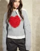 - Coraz贸n en rojo en el delantero, en relieve y en tejido.