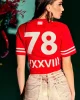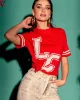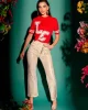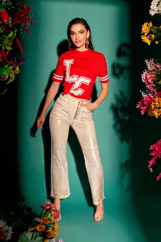 Camiseta corta de punto en tono verde con manga corta y ajuste ceñido, perfecta para looks frescos y juveniles. Combinada con prendas de talle alto, aporta un toque moderno y desenfadado.