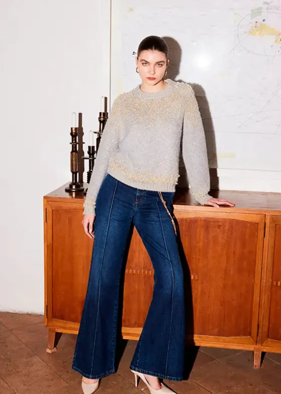 - Perlas en color crudo salteadas por el delantero y parte de los hombros.