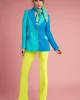 Pantalón en amarillo flúor, tiro medio alto, ajustado en pierna y con un efecto ligeramente acampanado. Cremallera invisible en un lateral.Consúltanos medidas para aconsejarte la talla.