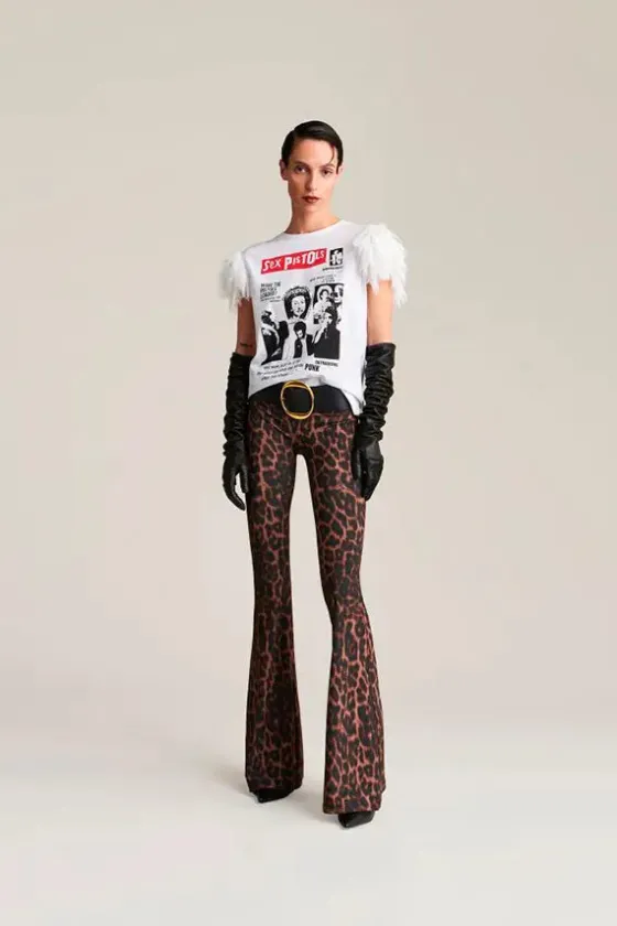 Los pantalones acampanados Nadine marcan la pauta con su corte ceñido al cuerpo y un drapeado estratégico en las caderas, diseñados para realzar las curvas. Disponibles en varios estampados llamativos en toda la prenda, añaden movimiento y una feminidad atrevida a cualquier atuendo.