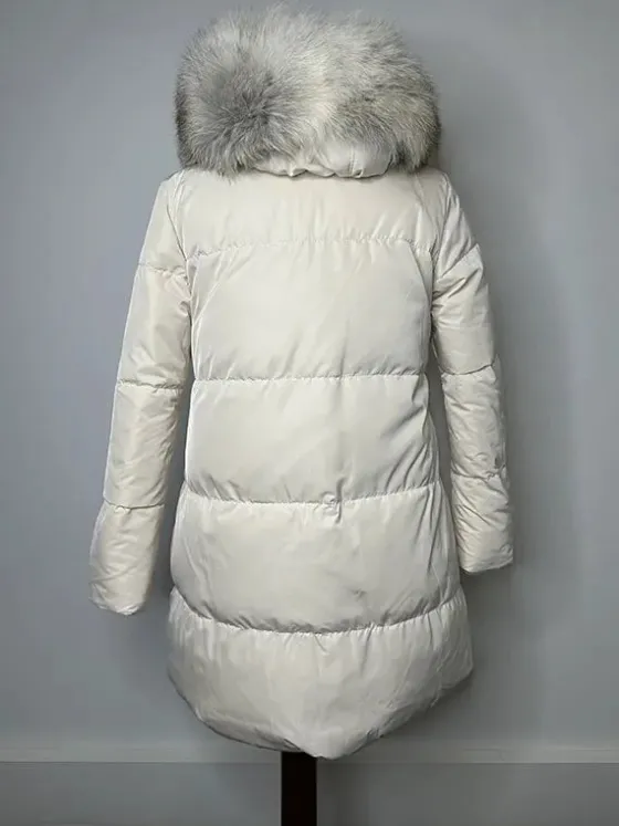 Composición: 100% poliéster. Forro: 100% poliéster. Relleno: 100% Pluma de Oca. Pelo: 100% natural.