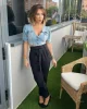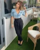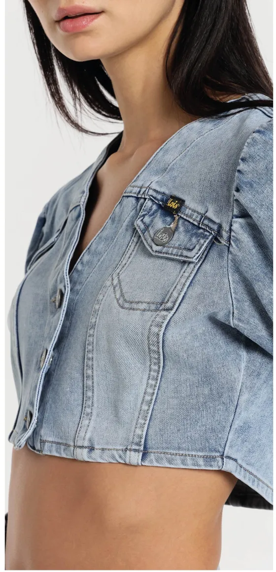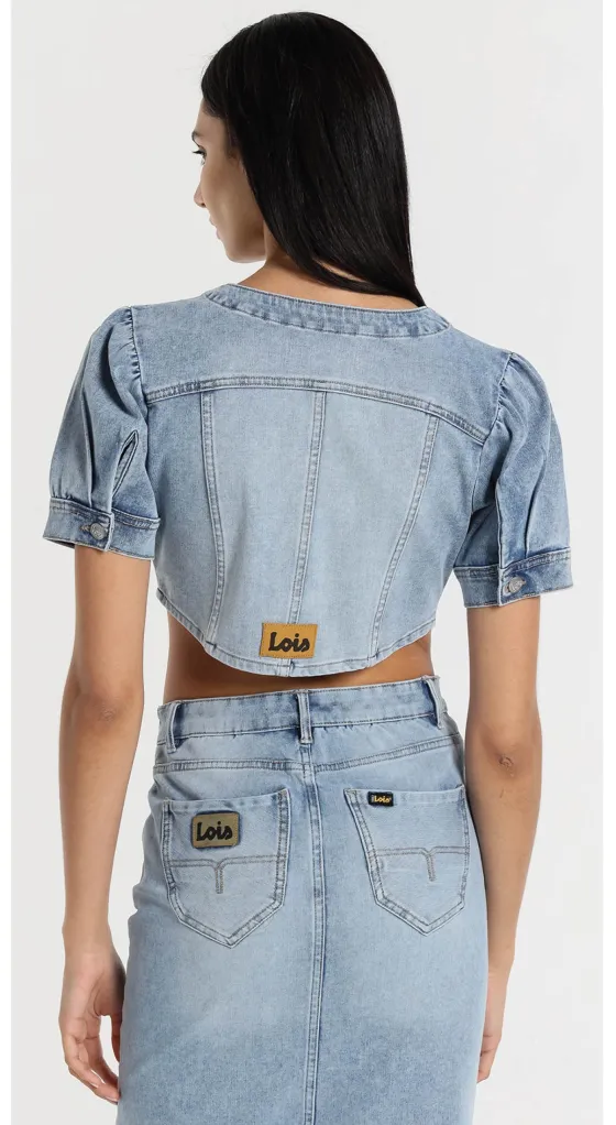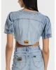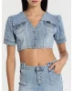 - Camisa vaquera crop top en azul claro.