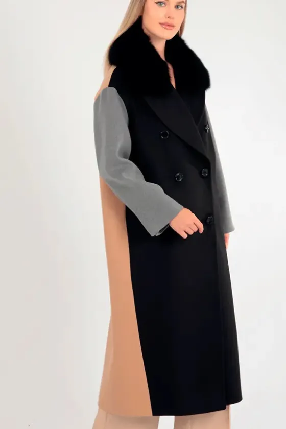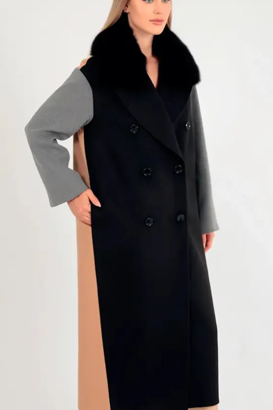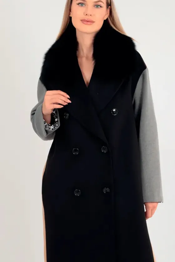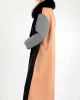 - Delantero en negro, espala en camel y mangas en gris.