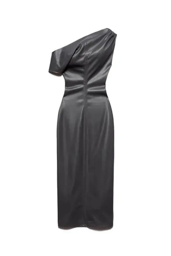 Carly es el vestido midi confeccionado en tejido con efecto piel que aporta a la sensualidad un toque gráfico moderno. El diseño de un solo hombro esculpe la silueta con líneas limpias y proporciones nítidas, mientras que el largo midi equilibra el look con un toque sofisticado.