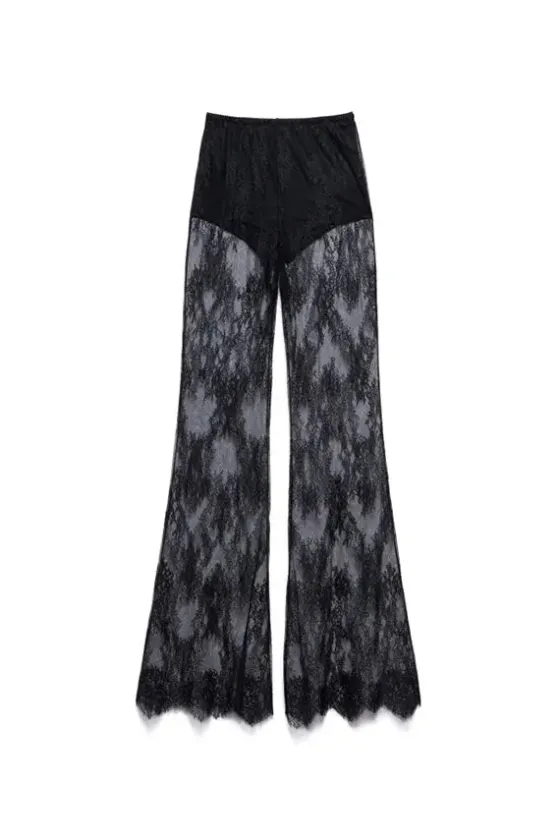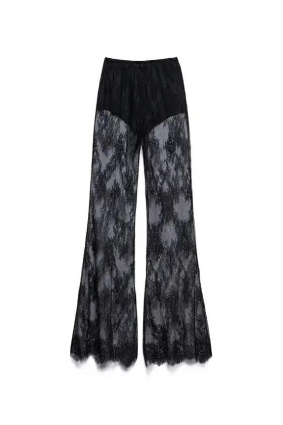 Los pantalones Rubí son un emblema de la audaz elegancia nocturna de Aniye By. Un delicado encaje cubre las piernas con un encanto sensual y se complementa con pantalones cortos interiores para brindar cobertura y crear un look aún más cautivador. Diseñados con una pierna acampanada con dobladillo festoneado para mayor dramatismo.