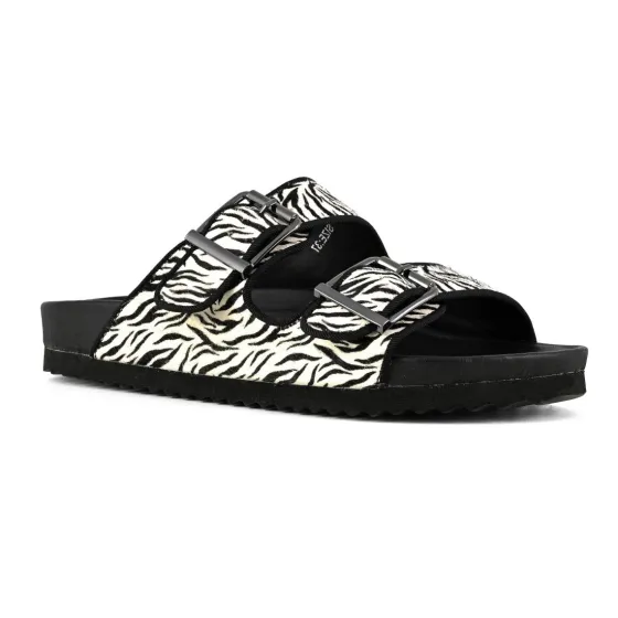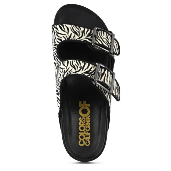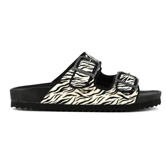 Sandalias con un estampado de cebra. Con hebillas para regular el ajuste. Comodísimas e ideales para cualquier look tanto de ciudad como de playa.