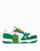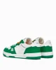 - Empeine de piel blanca con tacón a juego, perfiles verdes y detalles reflectantes