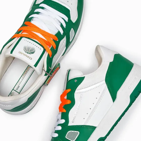 - Lengüeta con etiqueta Crime en piel blanca y gráfico estampado de baloncesto