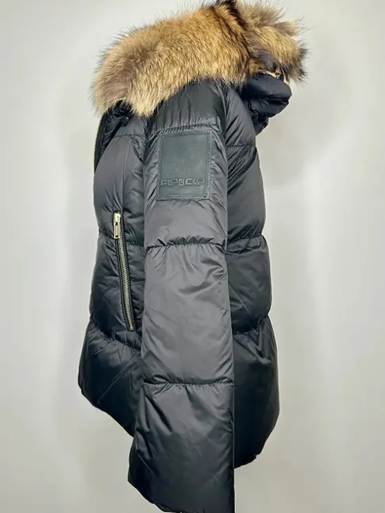 Composición: 100% poliéster. Forro: 100% poliéster. Relleno: 100% Pluma de Oca. Pelo: 100% natural.
