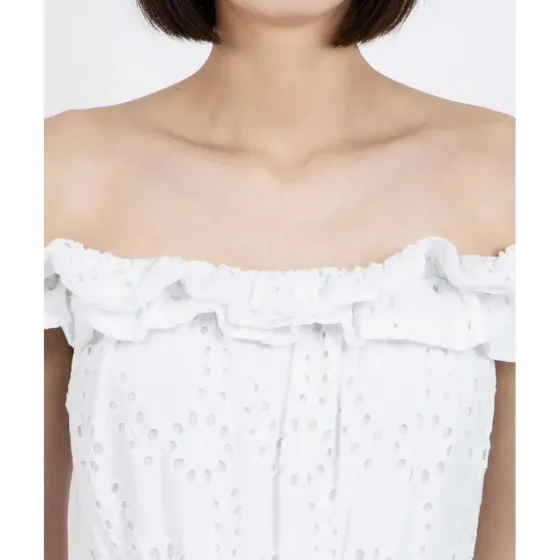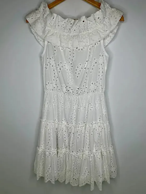 - Vestido blanco en un tejido de algodón troquelado.