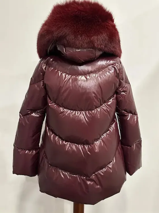 - Chaquetón plumas de Flo&Clo en color burgundy. Divino, con pelo natural al tono.