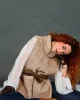 - Detalle en la espalda con trenzado sobre ecopiel marr贸n. Cintur贸n al tono.
