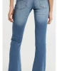 Pantalón vaquero azul, tiro medio. Ligeramente acampanado. Lavado y desgastado en delantero y trasera. Comodidad absoluta. 5 bolsillos.