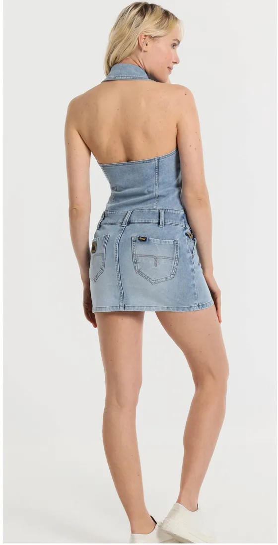 - Vestido vaquero en azul claro.