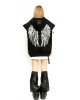- Con parche de alas bordadas en lentejuelas cosido en la espalda.