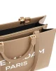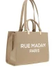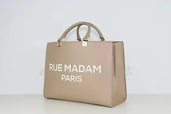 - Bolso tote en ecopiel lisa con logotipo grabado y estampado.