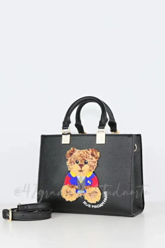 - Bolso mini tote en ecopiel martillada con el icónico oso Marvin y el logotipo estampado.