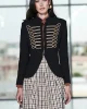 - Esta blazer negra con pasamanería dorada no es solo una prenda; es una armadura de estilo.