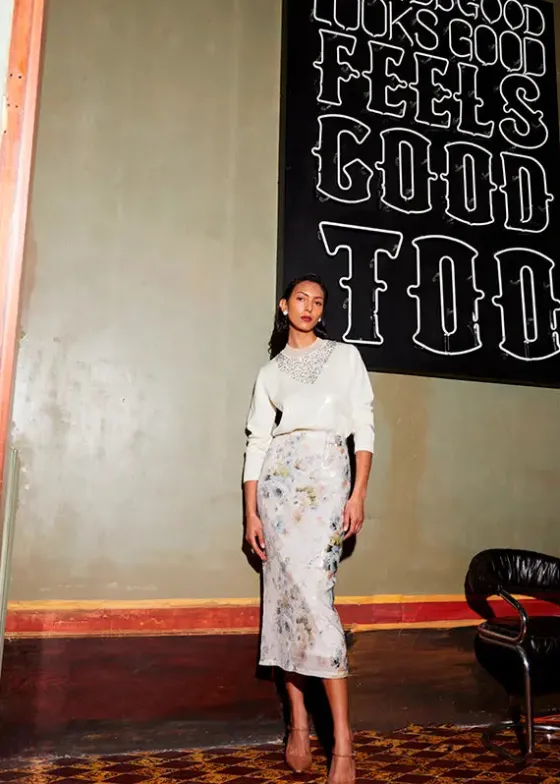 - Lentejuela transparente en todo el delantero.