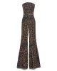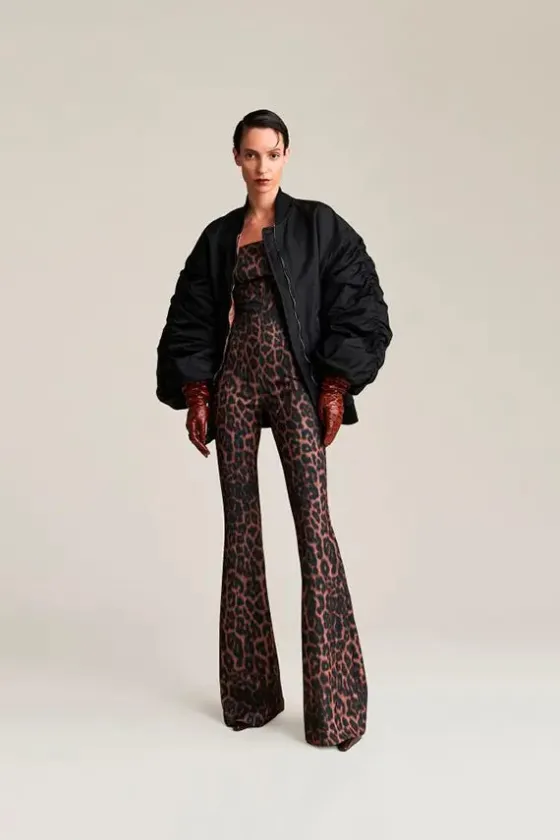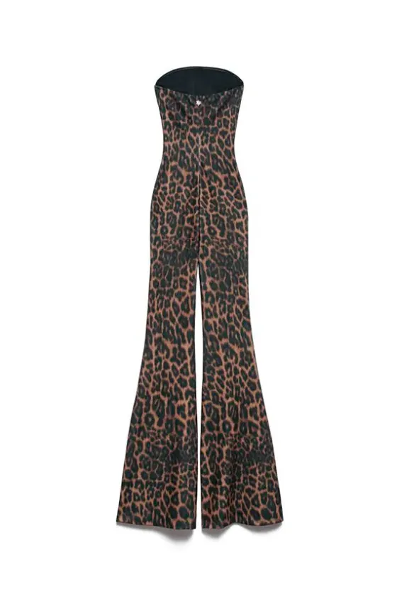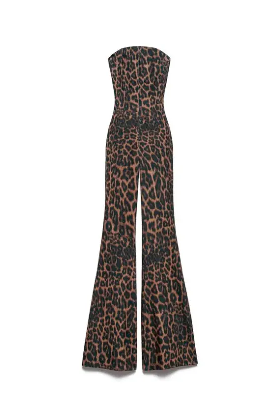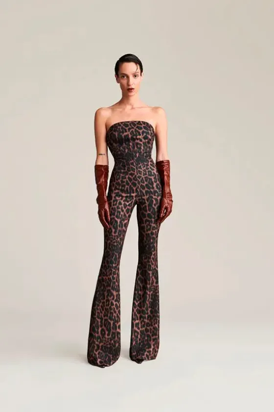 Líneas limpias. Espíritu indómito. El mono Jodie presenta un estampado animal en toda la prenda que expresa el lado salvaje del glamour, mientras que el corpiño recto esculpe el busto y deja al descubierto los hombros. La cremallera en la parte trasera, con un tirador de cremallera con la marca propia, remata la prenda con un diseño Aniye By touch.