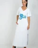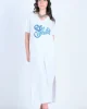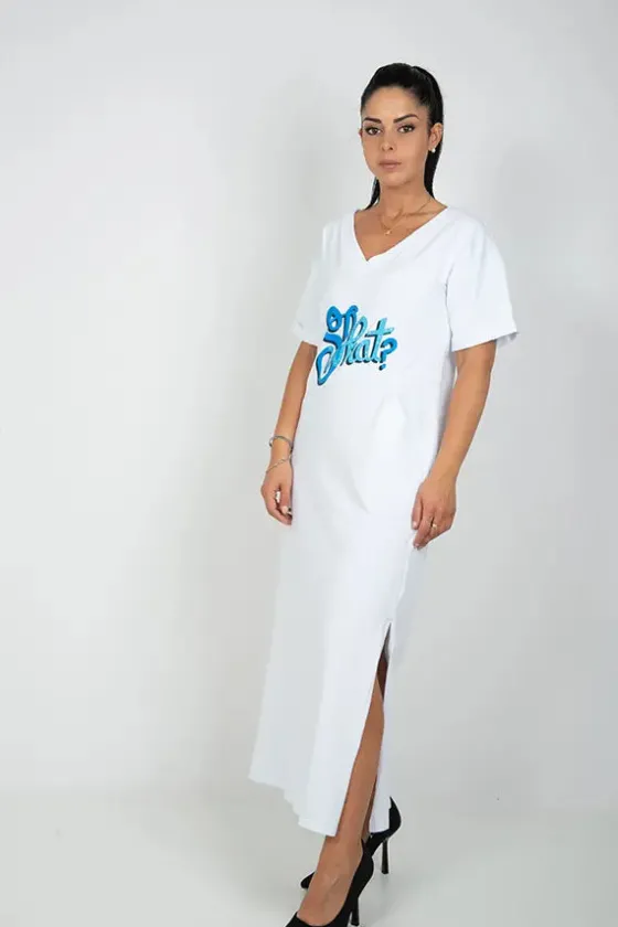 - Serigrafia en azul con el texto «So what» y decorada con pedrería.