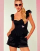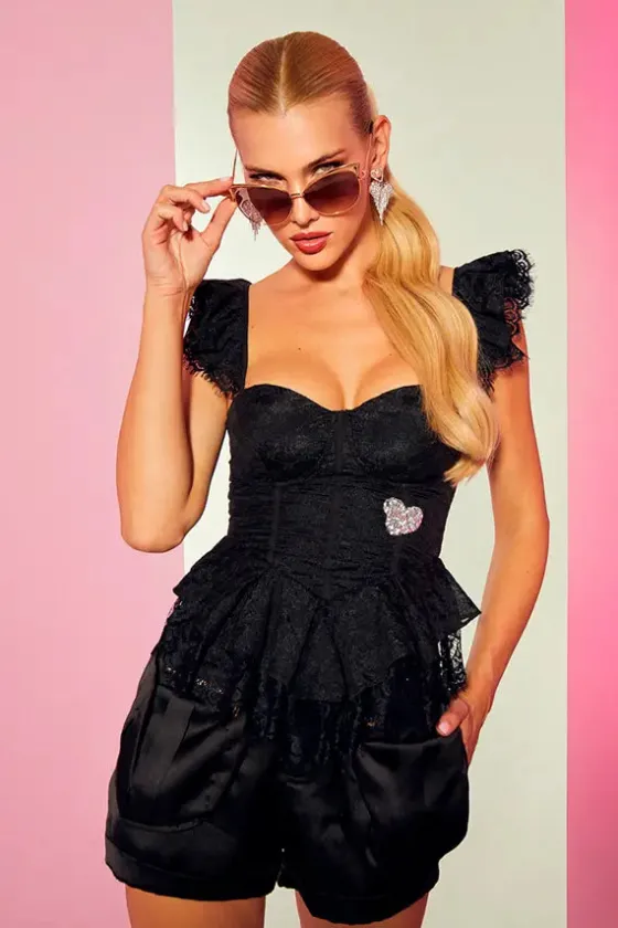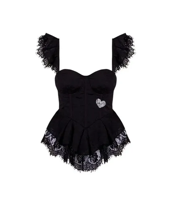 - 2 volantes en el bajo, en el mismo tejido y otro en puntilla al tono.