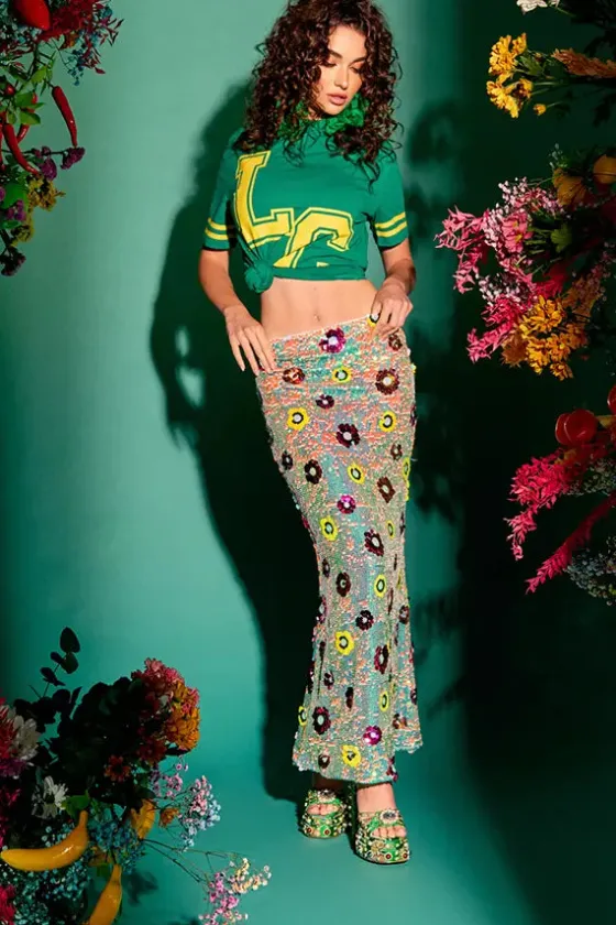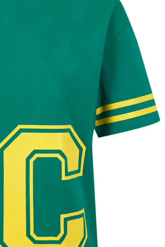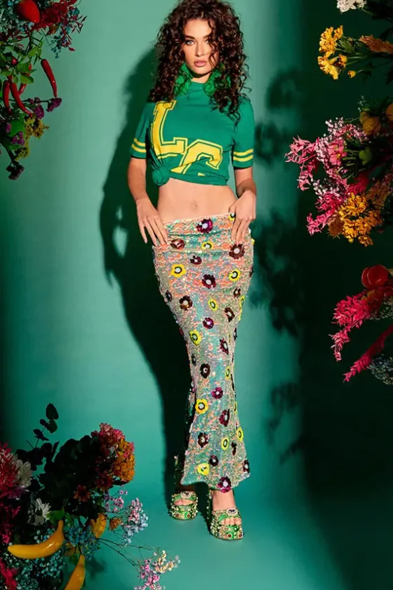 Camiseta corta de punto en tono verde con manga corta y ajuste ceñido, perfecta para looks frescos y juveniles. Combinada con prendas de talle alto, aporta un toque moderno y desenfadado.
