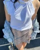 - Sin mangas y fruncida en un costado en la parte superior con un nudo.
