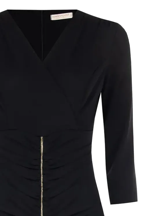 - Detalle de cremallera dorada en mitad del delantero para abrir de abajo a arriba.