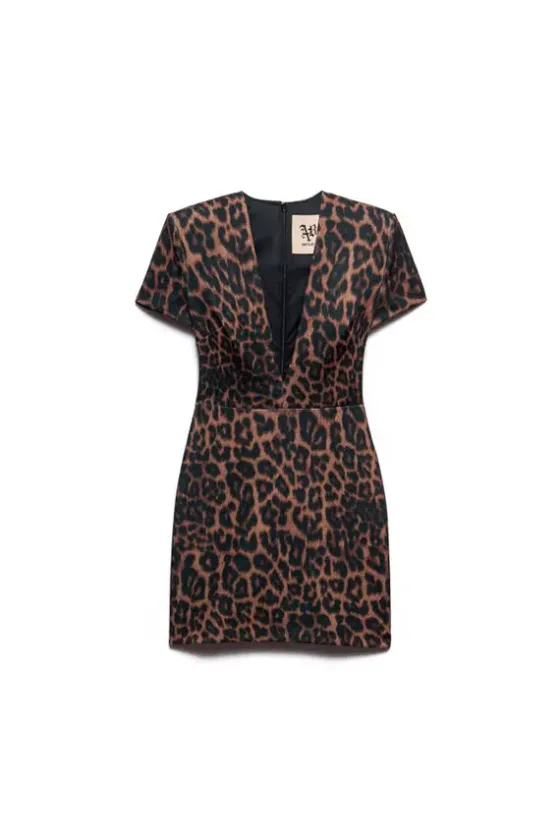 Con su confección en tejido elástico, el vestido Jodie se ajusta como un guante, mientras que el estampado animal en toda la prenda llama la atención desde todos los ángulos. El cuello en V resalta el escote a la vez que mantiene la estructura, mientras que las mangas largas equilibran la silueta ajustada.